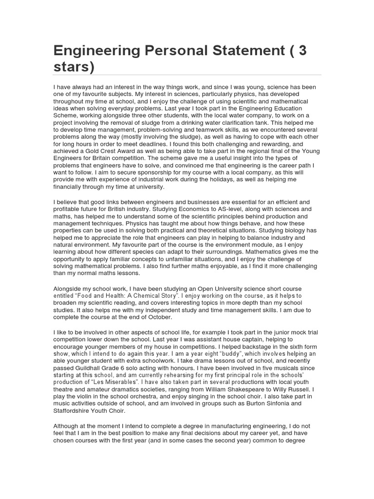 I have always had a creative ability and a fascination with how things work. This is a real personal statement written by a student for their university application. A roller coaster helped one student to decide to specialise in engineering, and her experience in coaching younger students helped her application. I remember my first experience of engineering was when i was quite young. Web discover expert advice from successful oxbridge applicants to write a flawless personal statement.